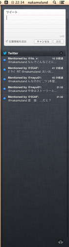 なにが新しくなったのか調べてたら、iOSみたくOS XでTwitterをサポートしてた。
